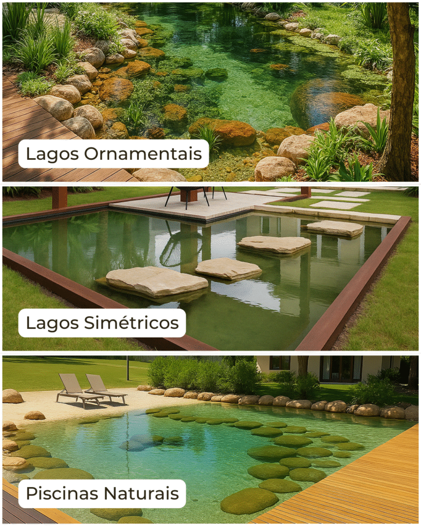 Lagos ornamentais, simétricos e piscinas naturais que encantam, refrescam e valorizam seu ambiente.